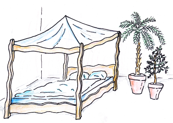 Zum Beispiel diese Zeichnung eines Himmelbettes ganz nach Kundenwunsch. Die Ausführung finden Sie in kürze unter: